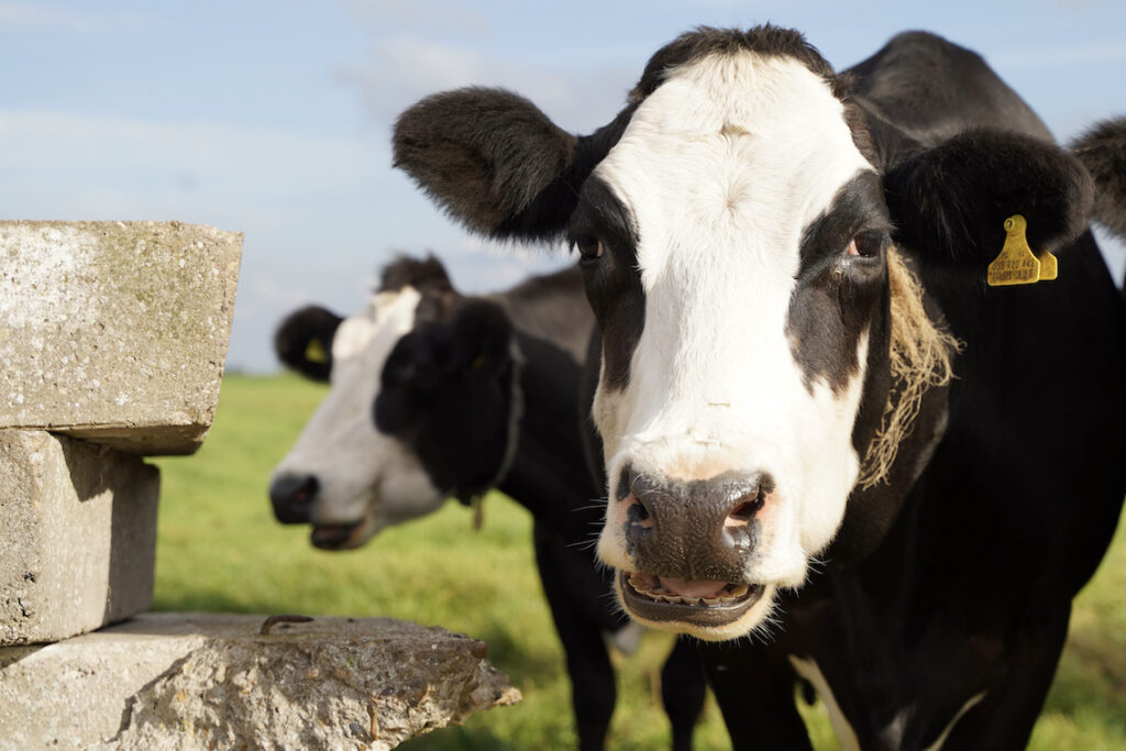 In een omgeving die letterlijk en figuurlijk het groene hart is. Een korte rit dwars door polderlandschap brengt ons bij de hoofdrolspelers: vijftig Blaarkop-koeien. Ze genieten overdag van de buitenlucht en brengen de nacht door in de stal.